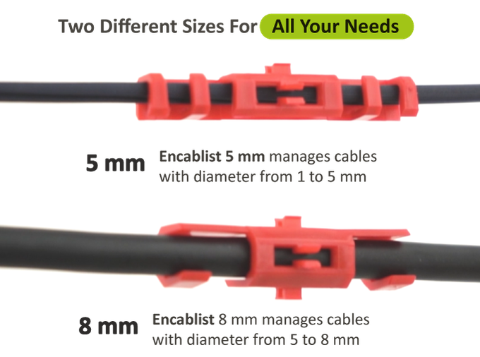 Encablist becomes an integral part of the cable itself. No adhesives, tools, or solid surfaces are required to use them.
